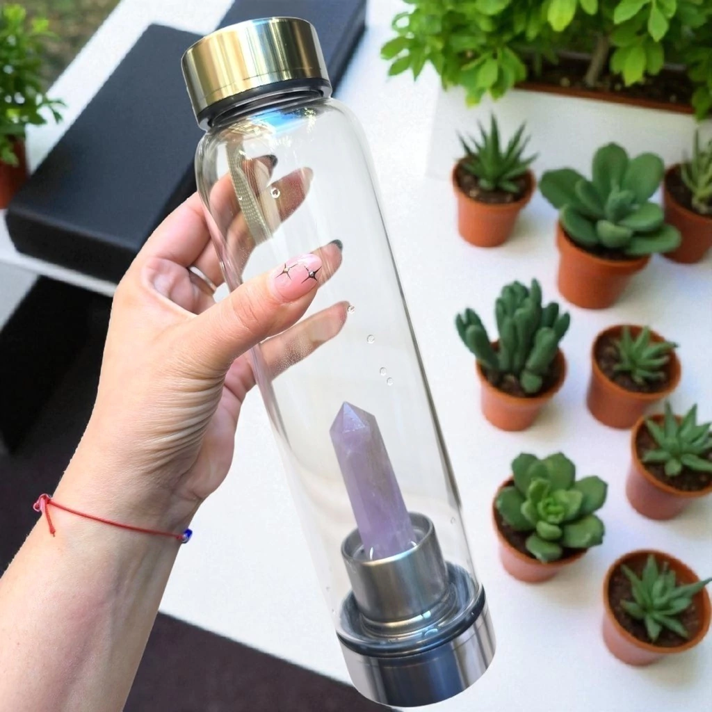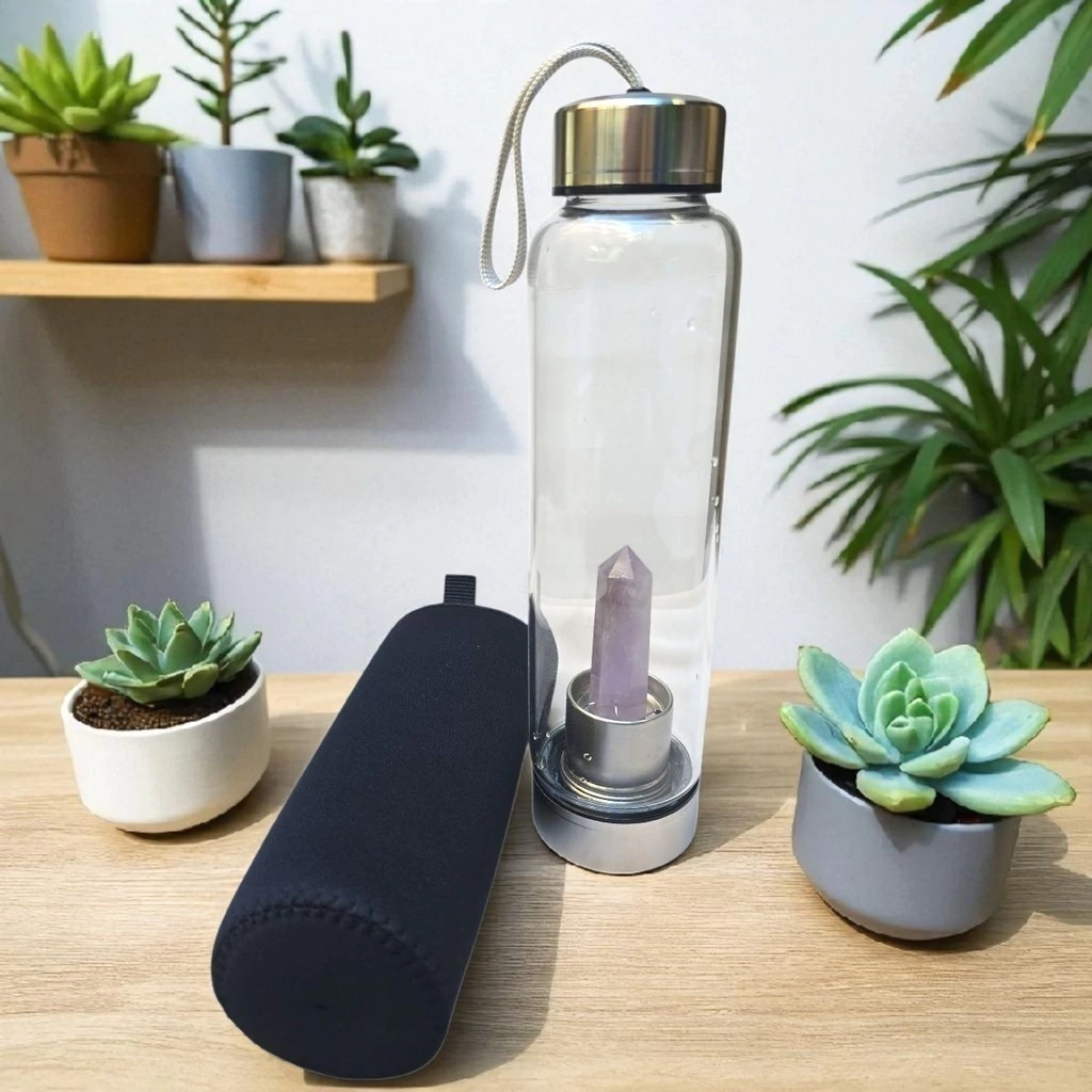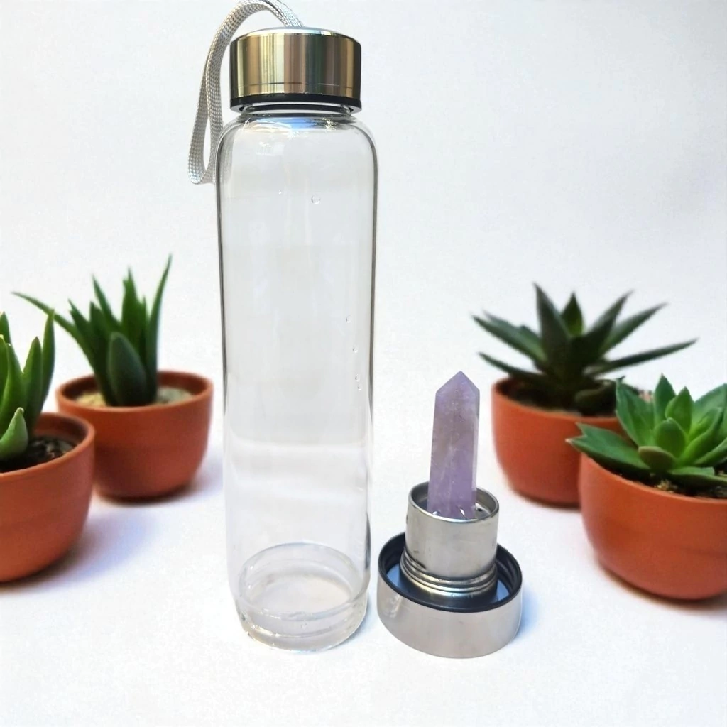 Botella Hidra Cristal Punta AMATISTA Elixir Cristales 550ml Monte Kurama