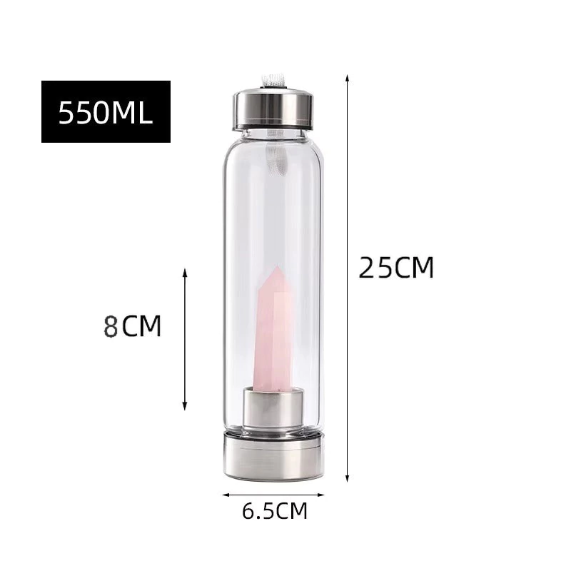 Botella Hidra Cristal Punta CUARZO ROSA Elixir Cristales 550ml Monte Kurama