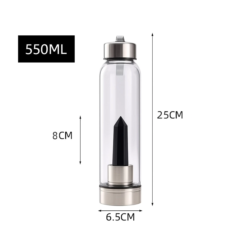 Botella Hidra Cristal Punta OBSIDIANA Elixir Cristales 550ml Monte Kurama
