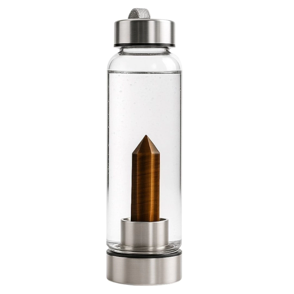 Botella Hidra Cristal Punta OJO DE TIGRE Elixir Cristales 550ml Monte Kurama