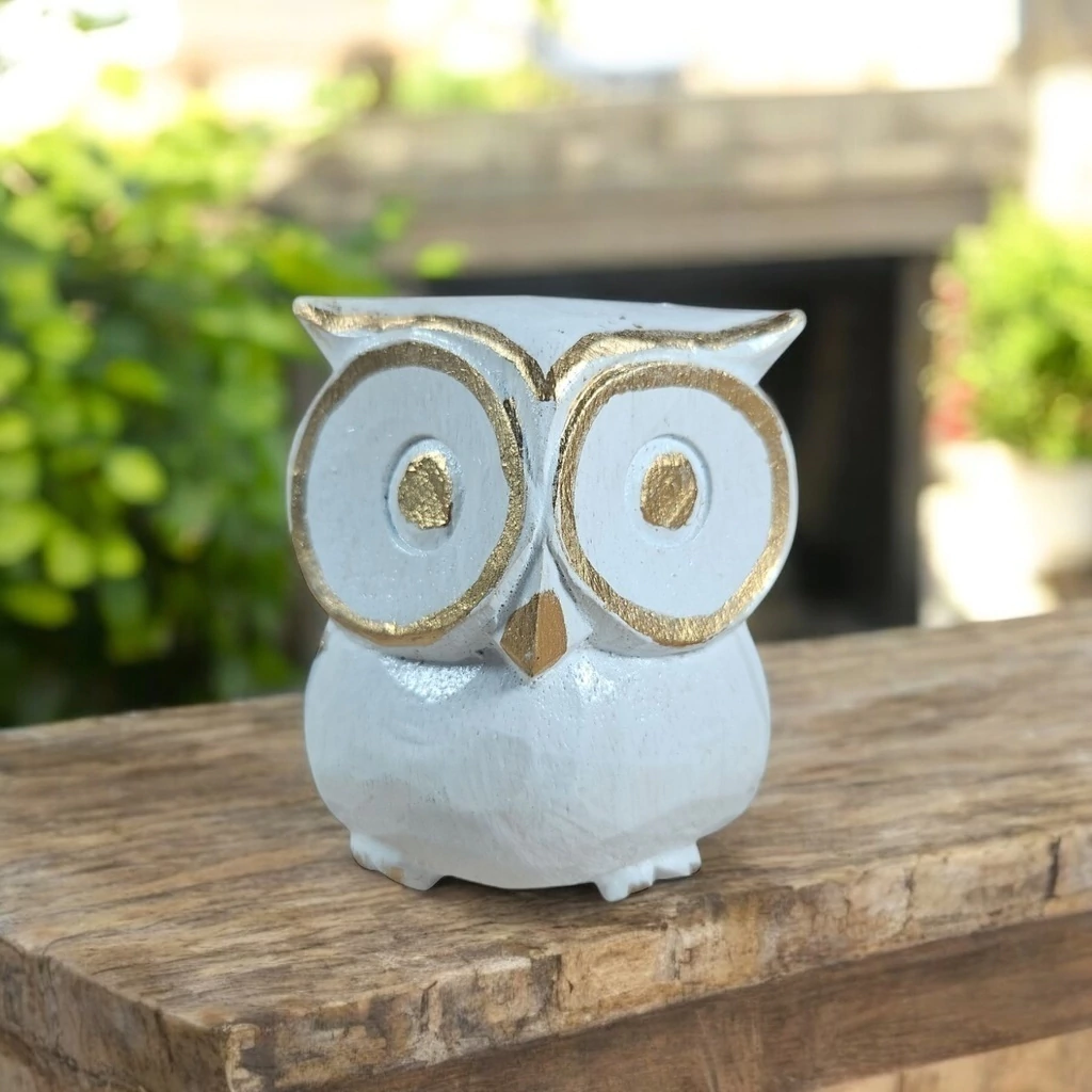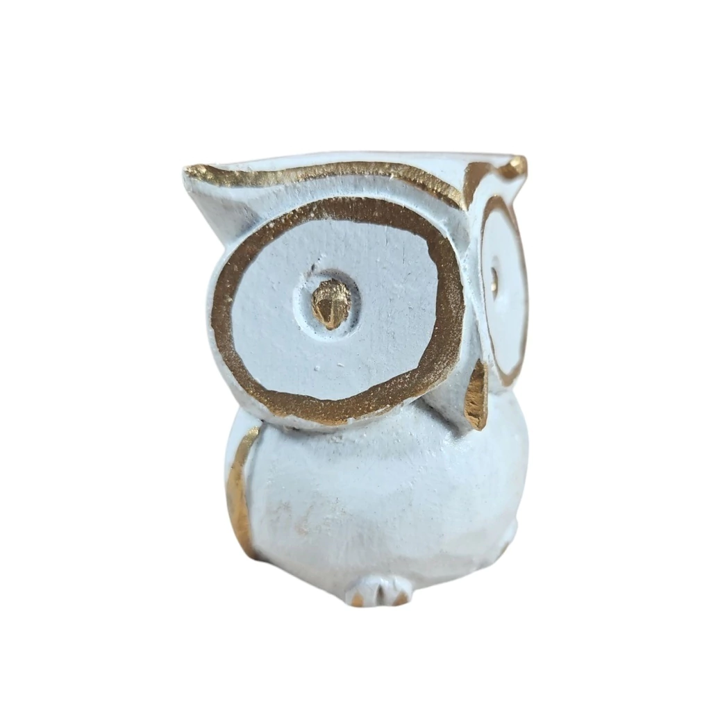 Búho Wash Blanco Dorado Madera 7cm Monte Kurama