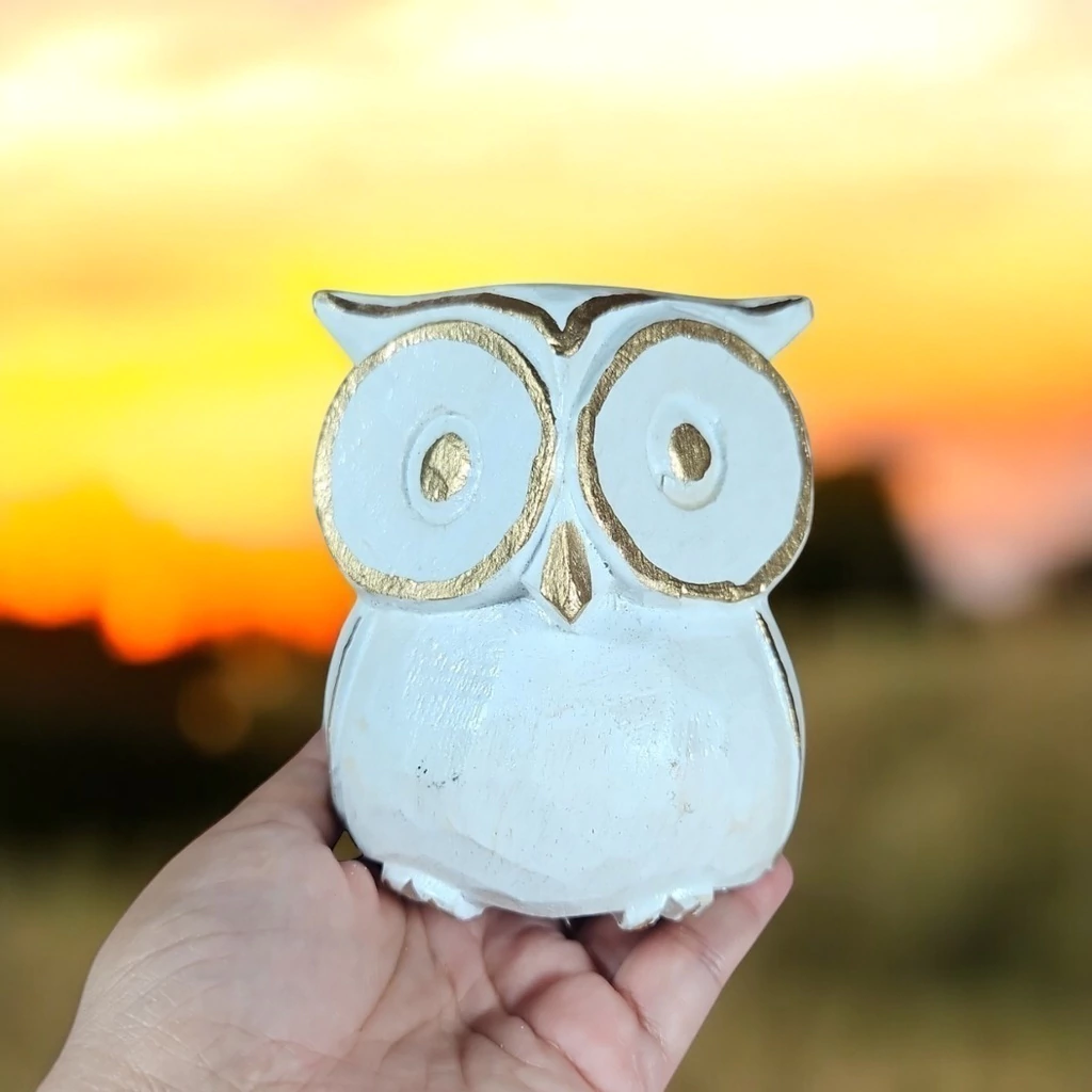 Búho Wash Blanco Dorado Madera 8cm Monte Kurama