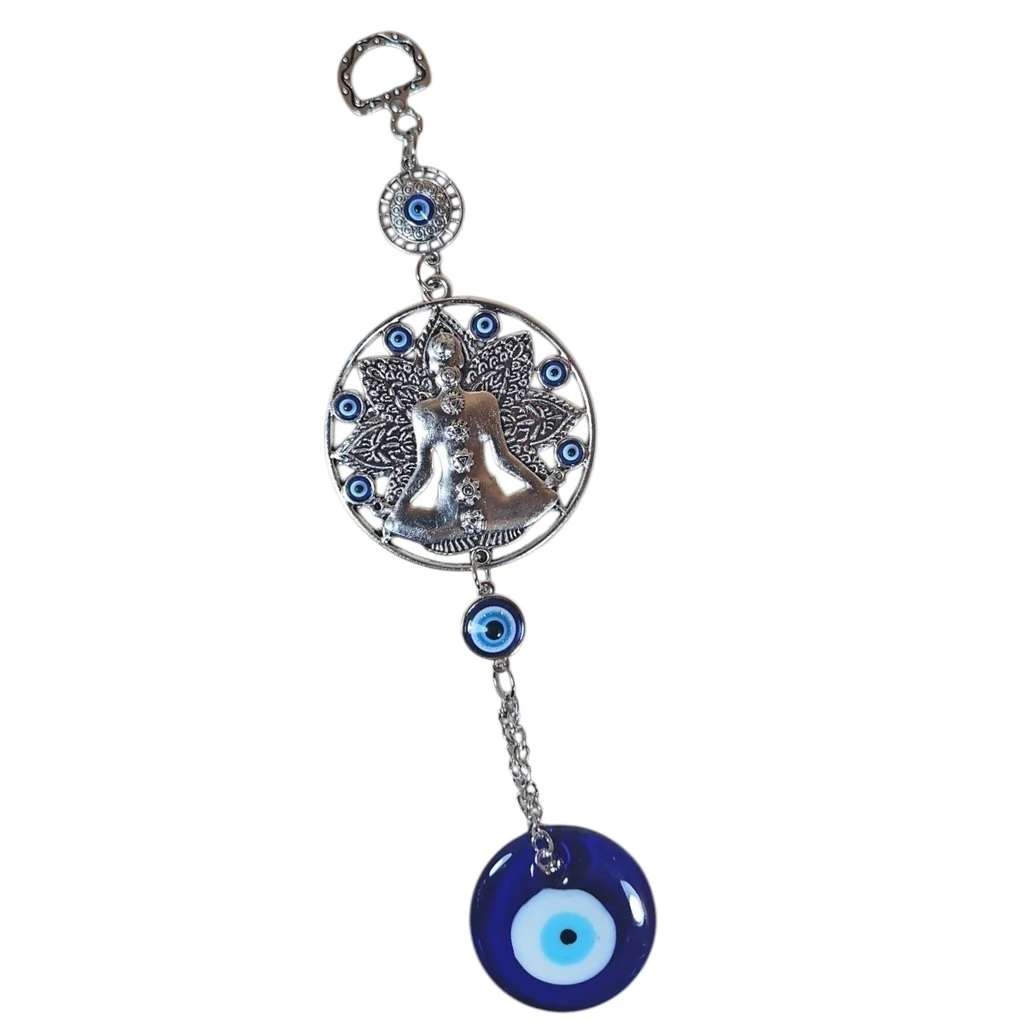 Este amuleto esta destinado a proteger contra el mal de ojo. Que se le atribuye supersticiosamente, a la mirada envidiosa de algunas personas así mismo los malos sentimientos que estan dentro del ser humano, salen a traves de los ojos. Se dice que repele las malas energías y nos protege de todo mal. Buda nos recuerda la importancia del camino hacia la iluminación y la realización personal.