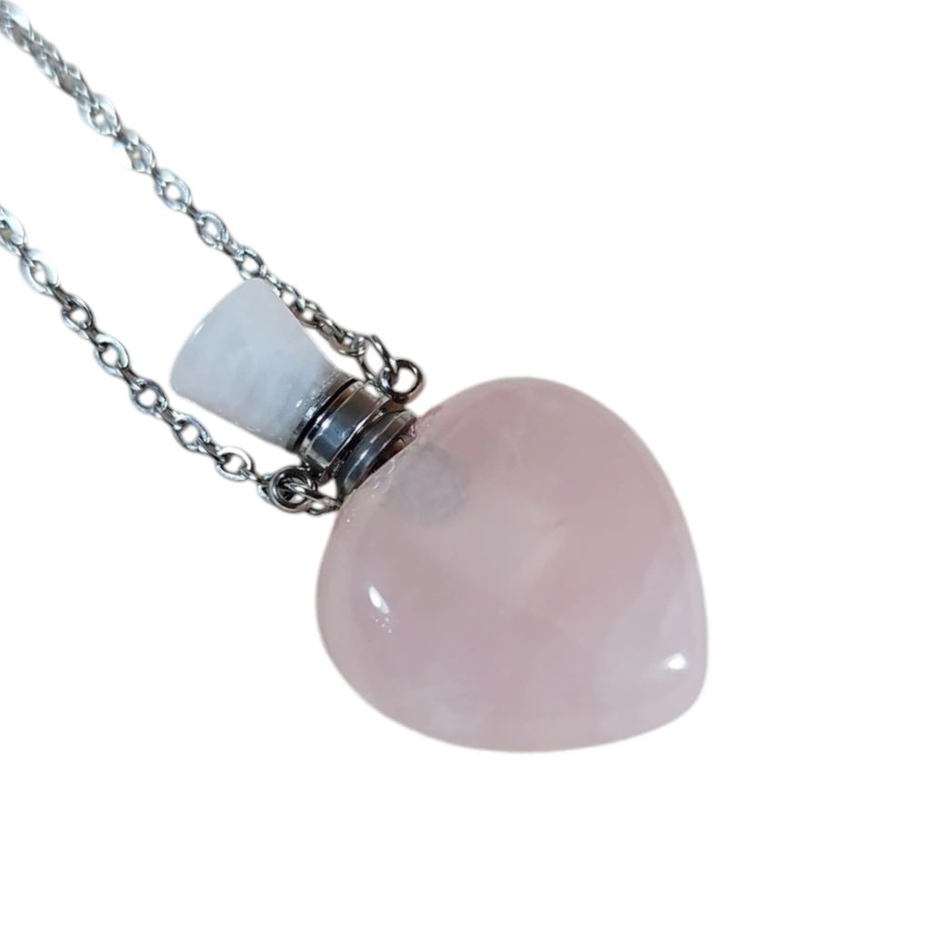 Collar Perfumero Corazon Cuarzo Rosa Plateado Monte Kurama Monte Kurama