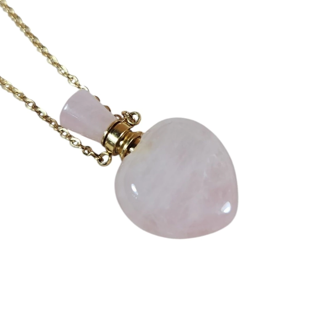 Collar Perfumero Corazon Dorado Cuarzo Rosa Monte Kurama Monte Kurama