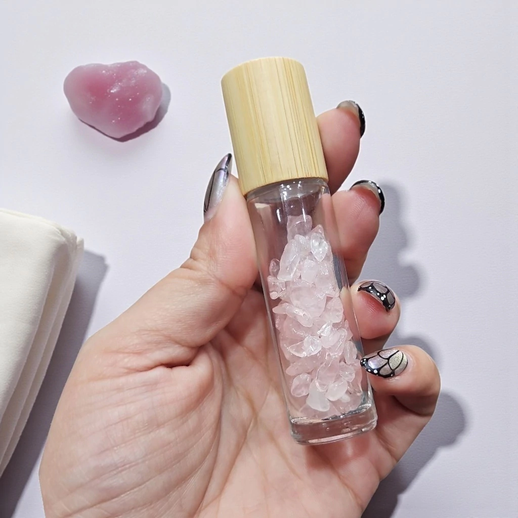 Crystal Roller Bamboo · Cuarzo Rosa Conectá con la energía del amor y la ternura emocional a través del Crystal Roller Bamboo de Cuarzo Rosa, un aplicador roll-on de vidrio natural con piedras genuinas que abren el corazón y promueven la armonía interior. El Cuarzo Rosa, piedra del amor incondicional, fomenta la empatía, la dulzura y la autoaceptación. Ideal para aplicar aceites florales o perfumes energéticos que eleven la vibración afectiva y la conexión emocional. Su diseño combina vidrio templado, rodillo de cuarzo rosa pulido y tapa de bambú natural, creando una pieza delicada que refleja belleza, amor y sanación emocional. Uso recomendado: Aromaterapia, rituales de amor propio, meditación del corazón y cuidado personal consciente. Presentaciones disponibles: Jaspe Rojo: vitalidad · fuerza · estabilidad Obsidiana: limpieza · transformación · liberación Ojo de Tigre: protección · coraje · prosperidad Cuarzo Verde: sanación · equilibrio · bienestar Cuarzo Rosa: amor propio · dulzura · empatía Sodalita: comunicación · confianza · serenidad Lapis Lazuli: sabiduría · verdad · expansión espiritual Amatista: calma · intuición · protección espiritual Cuarzo Cristal: claridad · energía · conexión divina