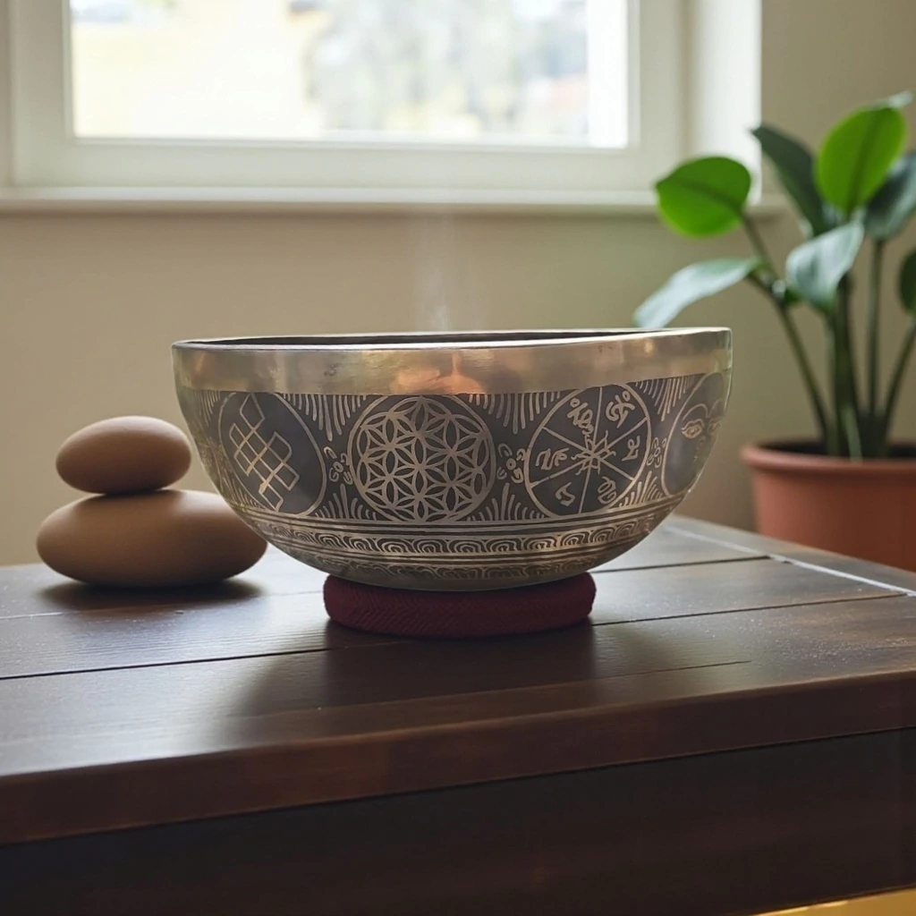 Cuenco Tibetano Premium Artesanal Tallado 27cm Monte Kurama