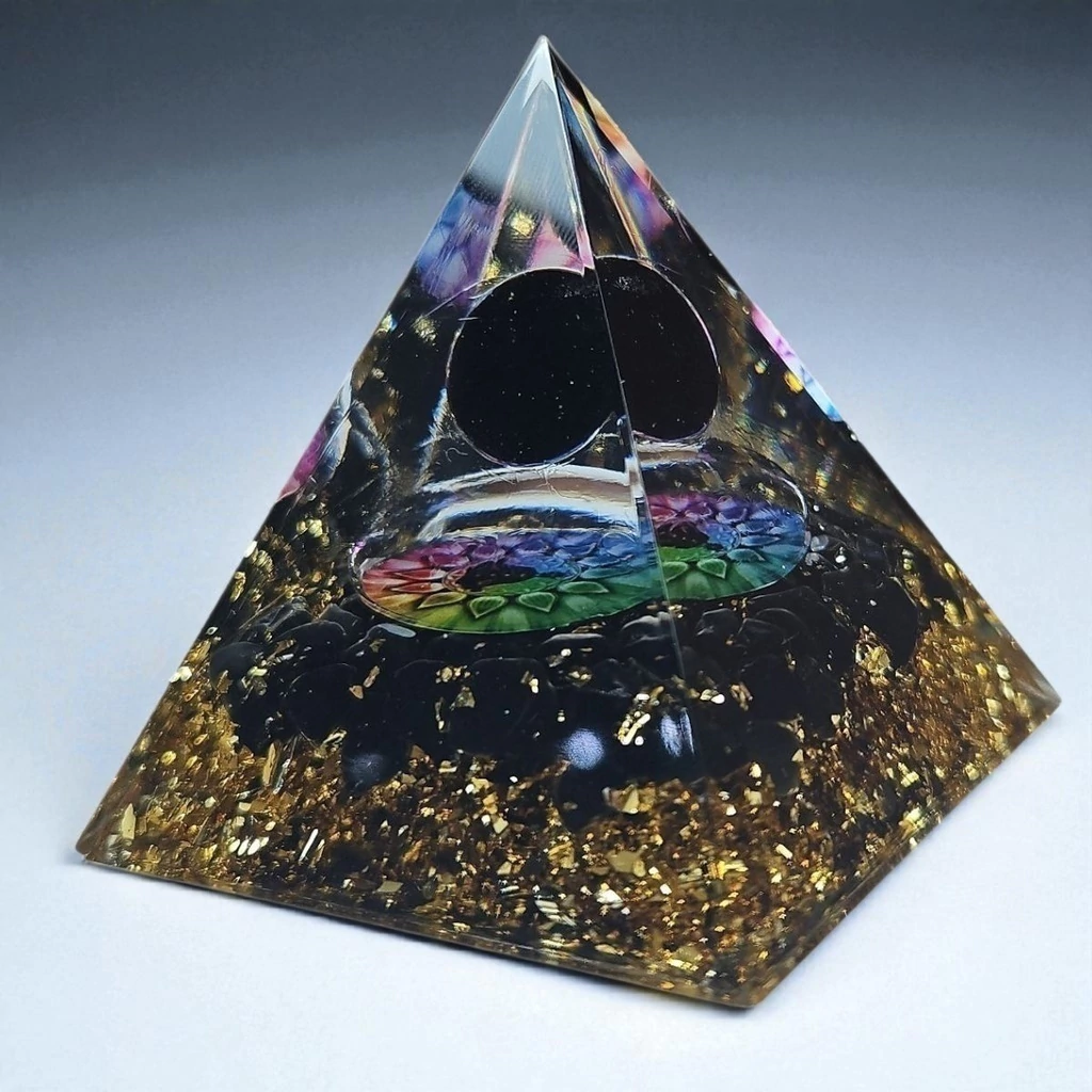 Pirámide Orgón OBSIDIANA Chakras 6cm Monte Kurama