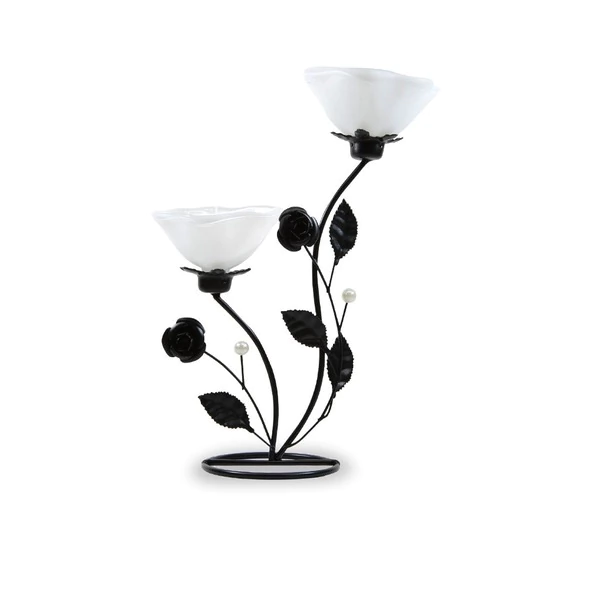 Porta Velas 2 Flores Negro 25cm Monte Kurama