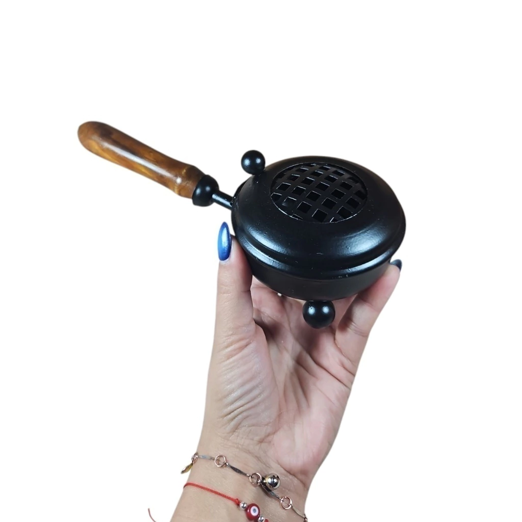 Sahumador Rejilla Metal Mango Madera con Tapa 9,5cm aprox Monte Kurama