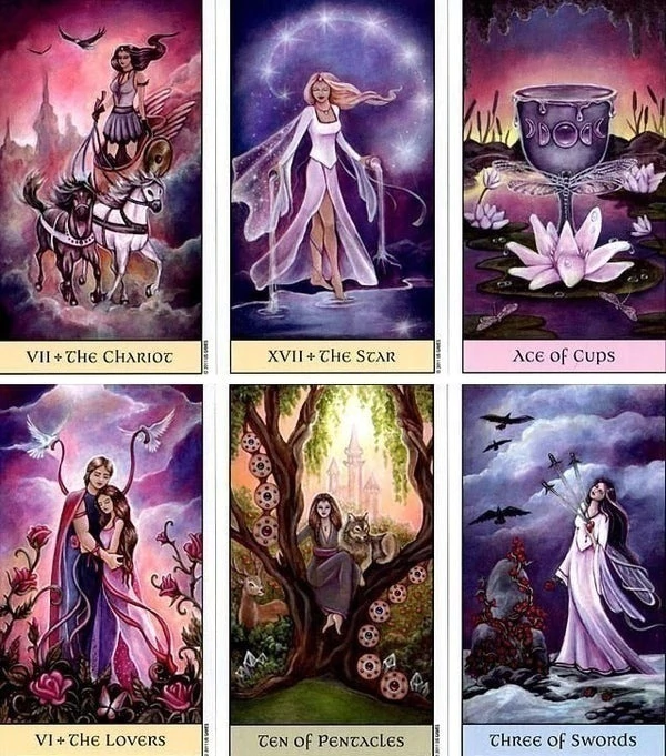 La artista de temática fantástica Jennifer Galasso reproduce el simbolismo del tarot tradicionalen un estilo único recurriendo al imaginario etéreo del mundo de las hadas y basándose envibrante esquema de colores inspirado por las cuatro estaciones y los cuatro elementos. El Tarot de las Visiones Cristalinas incluye una Carta de lo Desconocido para la contemplacióndel futuro o la exploración de los asuntos mediante una comprensión más profunda.